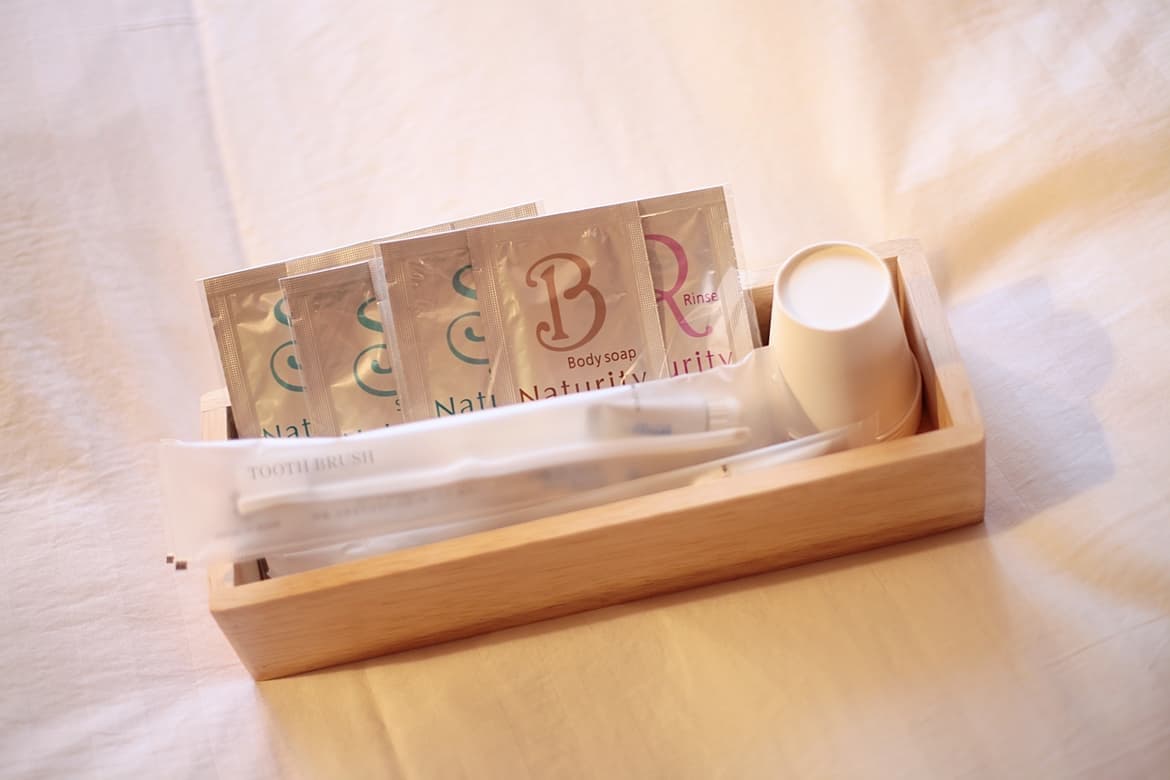 コーセーのボディソープ、シャンプー、リンス、またボディタオル、フェイスタオル、歯ブラシを用意しています。その他、各部屋にヘアドライヤーも設置しております。髭剃りはフロントにて用意がありますので申しつけください。